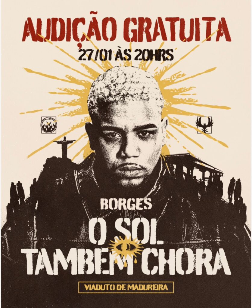 No próximo dia 27 de janeiro de 2026, às 20h, o Viaduto de Madureira, na Zona Norte do Rio de Janeiro, será palco da audição do projeto “O Sol Também Chora”, do artista Borges. O evento acontece na Rua Carvalho de Souza, 211 – Madureira, em um dos pontos mais simbólicos da cultura urbana carioca.