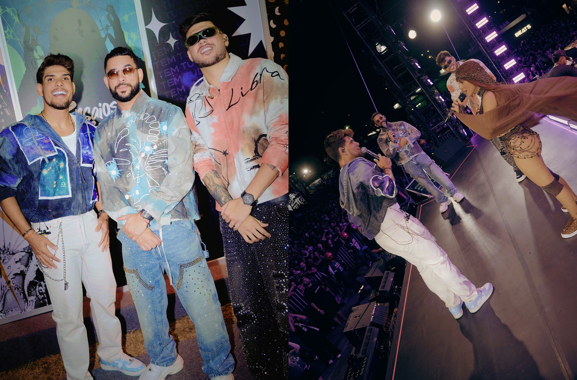 | Henry Freitas, Kadu Martins e Nuzio Medeirosforam os grandes destaques da edição do Ensaios da Anitta realizada neste domingo (11), em Fortaleza. Convidados de surpresa, como propõe a dinâmica da temporada 2026 do projeto, os artistas subiram ao palco do Marina Park ao lado de Anitta e levaram o público ao delírio em uma noite de ingressos oficialmente esgotados. Ícones do forró na atualidade e conhecidos como Auge Boys, os artistas cantaram “Superfantasticamente”, novo sucesso do trio, além de “Ritmo da Sanfoninha”, já considerada a música do São João 2025, e “Tando”, hit que alcançou o topo do Spotify Brasil no último ano, figurando entre as canções mais ouvidas do país. A participação consolidou o momento de ascensão vivido pelos três, que hoje são referência no gênero. Em sintonia com o tema “Cosmos”, que guia o Ensaios da Anitta deste ano, Henry, Kadu e Nuzio prepararam jaquetas personalizadas com seus signos, entrando completamente no clima da edição. Anitta também seguiu a proposta estética do projeto e estreou, no show de Fortaleza, um look inspirado no signo de Capricórnio. Além dos Augeboys, a edição de Fortaleza contou ainda com participações de Melody, Felipe Amorim e Xand Avião, reforçando o peso do line-up surpresa e a força do evento na capital cearense. |