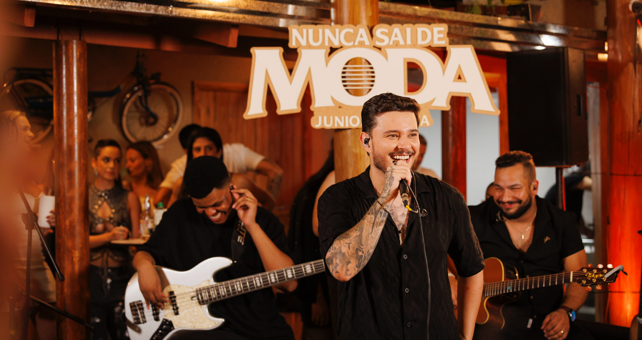 Na última quarta-feira (12), o cantor Júnior Marra transformou o Galo Vei Quintal Caipira, em Goiânia, num palco de resenha e clima de nostalgia. O novo projeto audiovisual “Nunca Sai De Moda” foi gravado de forma intimista, com ares de encontro entre amigos sentados à mesa de bar, e contou com participações especiais de Gabriel Gava, Wesley e Conrado, Kleo Dibah, Jeff Moraes e Renan e Ray.
